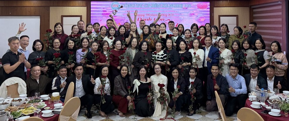 Nhân dịp kỷ niệm Ngày Quốc tế Phụ nữ 8/3, Công ty Cổ phần Bến xe Nghệ An đã tổ chức buổi gặp mặt thân mật nhằm tri ân và chúc mừng toàn thể nữ cán bộ, công nhân viên đang công tác tại công ty. Đây là hoạt động ý nghĩa thể hiện sự quan tâm của Ban lãnh đạo và tập thể người lao động đối với những đóng góp của chị em phụ nữ trong quá trình xây dựng và phát triển của công ty.
