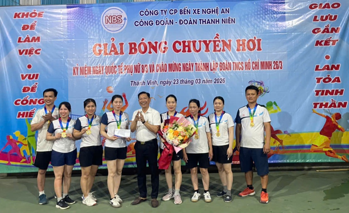 Công ty CP Bến xe Nghệ An tổ chức giải bóng chuyền hơi kỷ niệm ngày Quốc tế phụ nữ 8/3, chào mừng ngày thành lập Đoàn TNCS Hồ Chí Minh 26/3